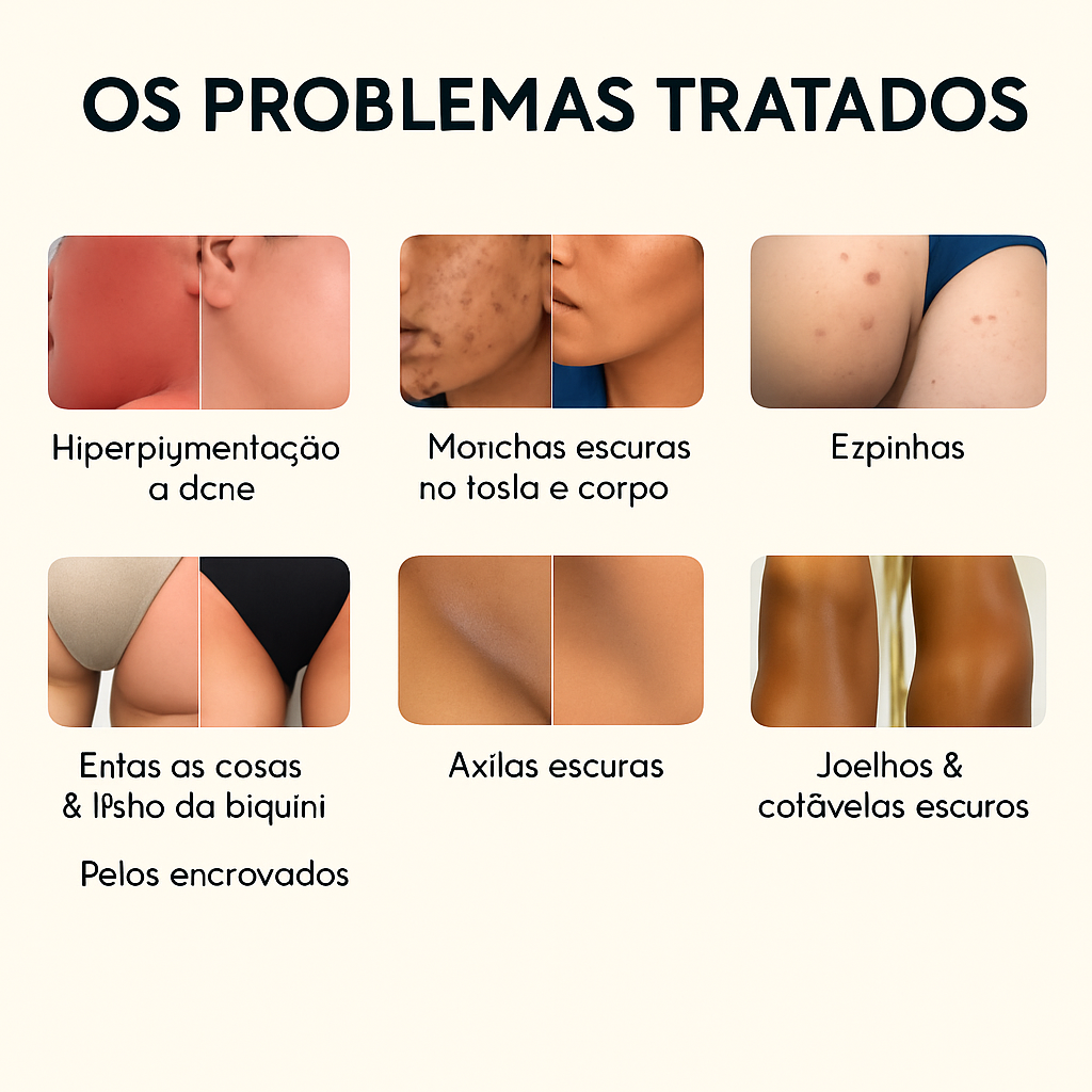 Agentes unificantes e antimanchas: alfa-arbutina, curcuma, vitamina C.